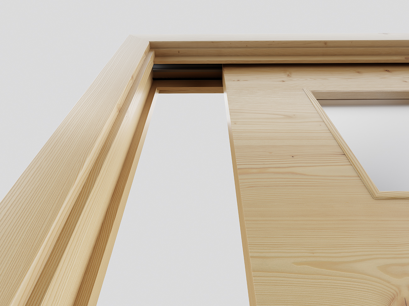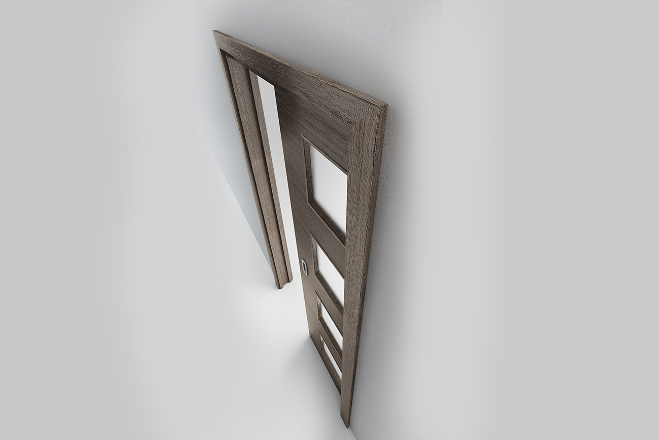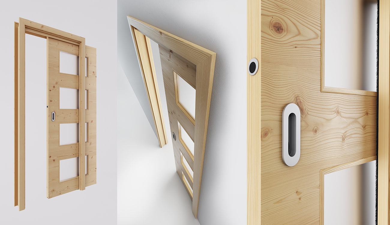 3D tehnični render drsnih vrat v steno
